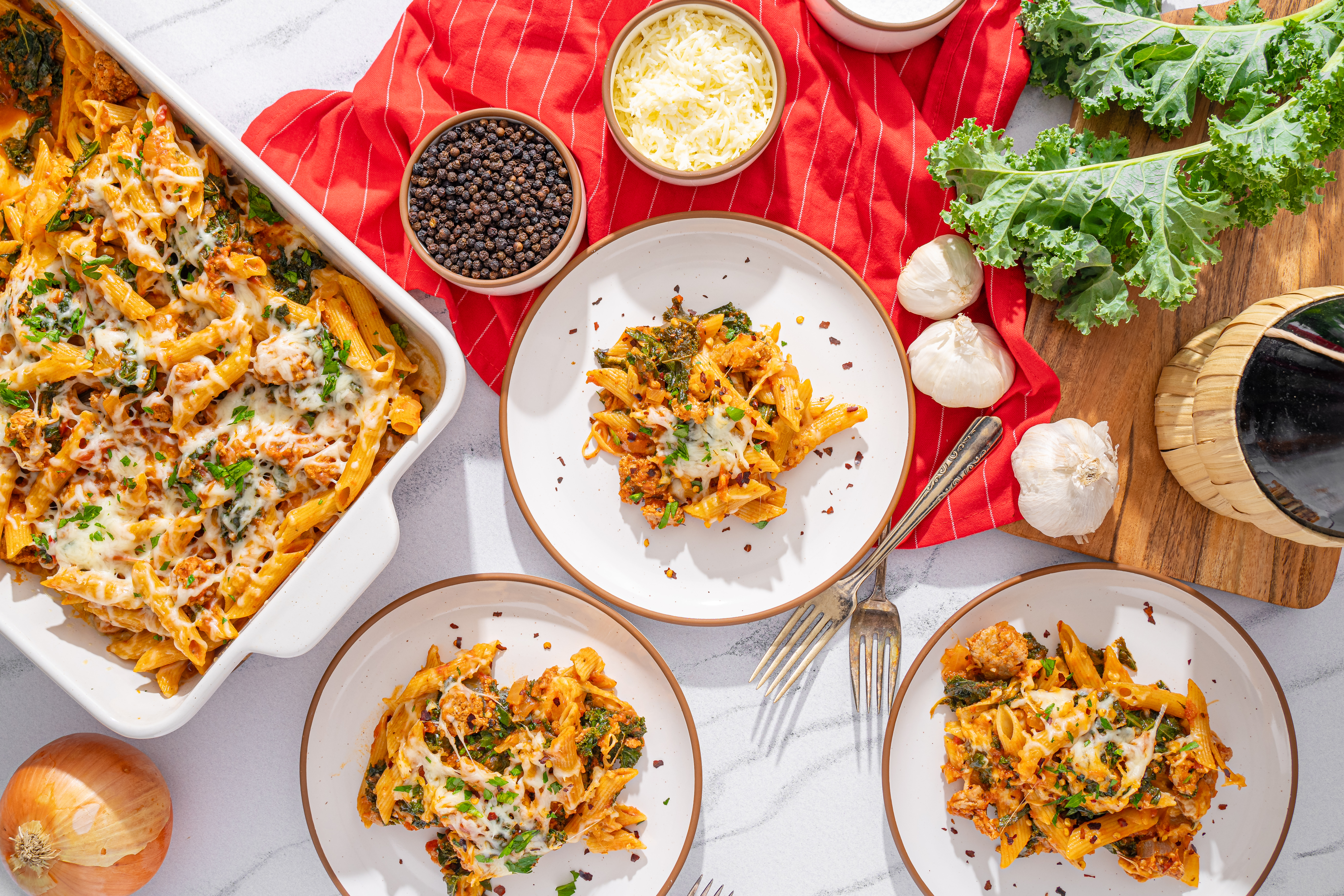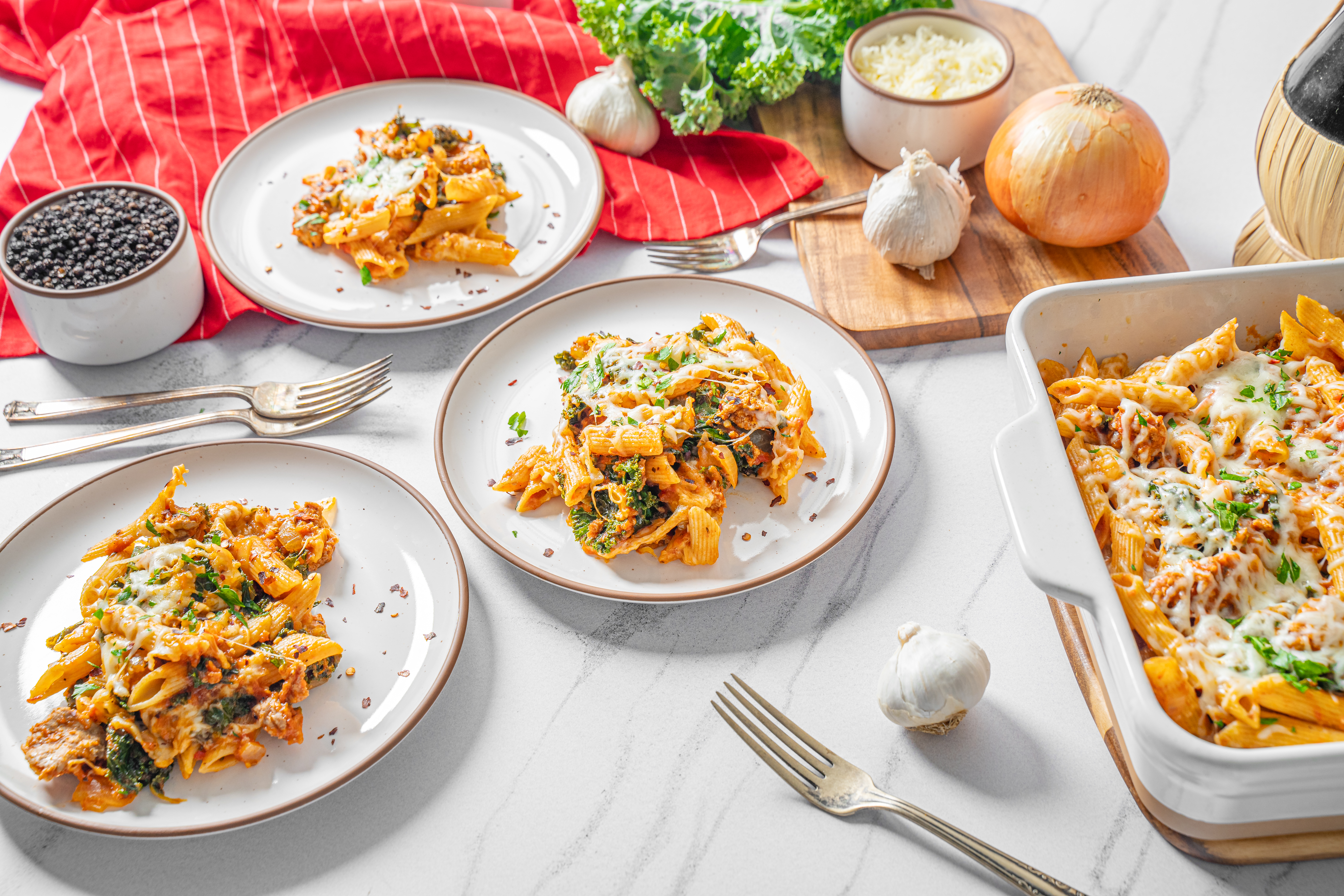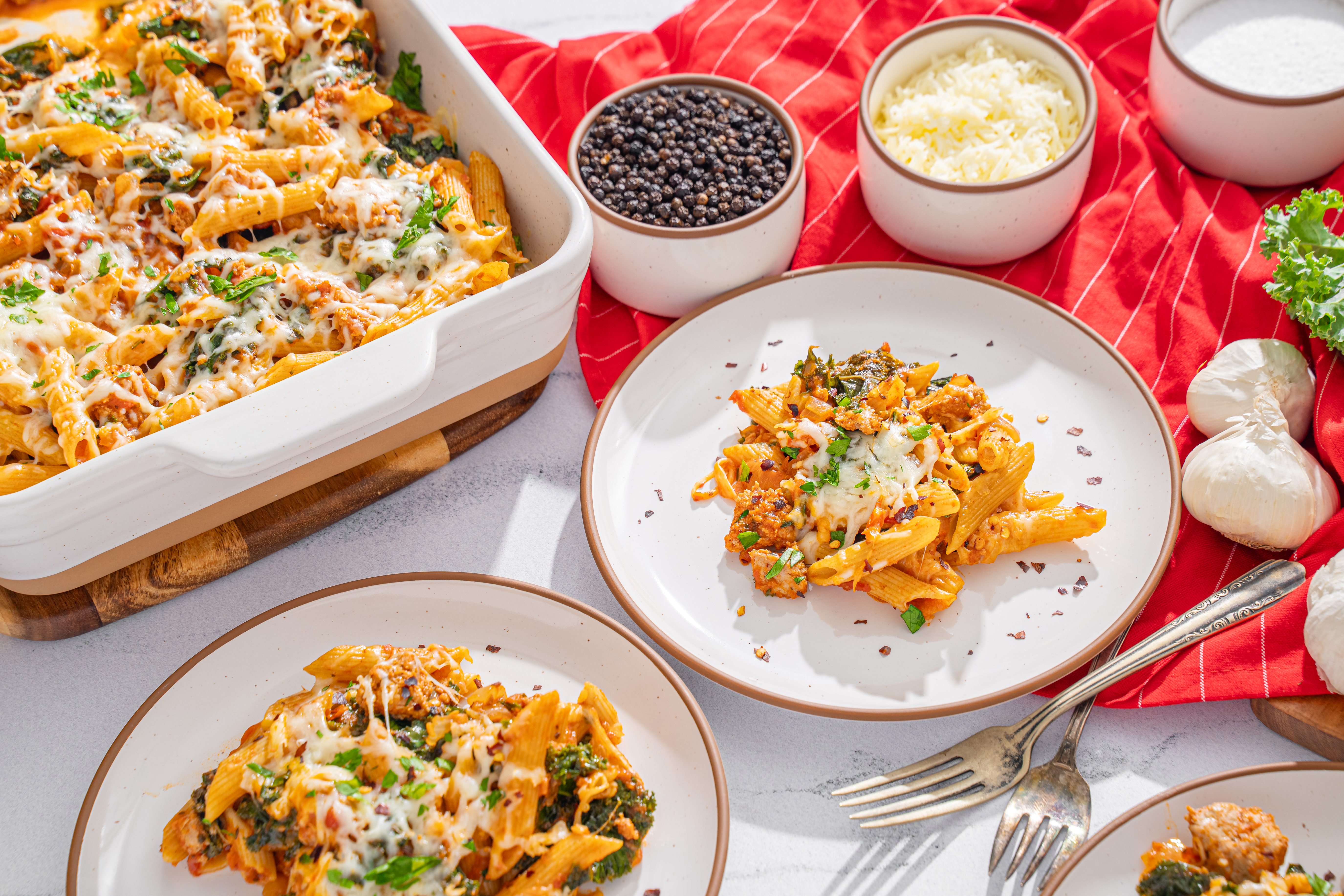 Bring a bit of food royalty back to the table with this savory casserole! The King Bake rules and your royal court, ahem, we mean your family, will love it! By great authority, juicy ground turkey, tender pasta, and a distinctively seasoned tomato sauce joins rank, and then is melted into mozzarella greatness. It is with great honor that we present The King Bake for your eating excellency. Everyone will bow down in food-loving reverence! Power to the bake!