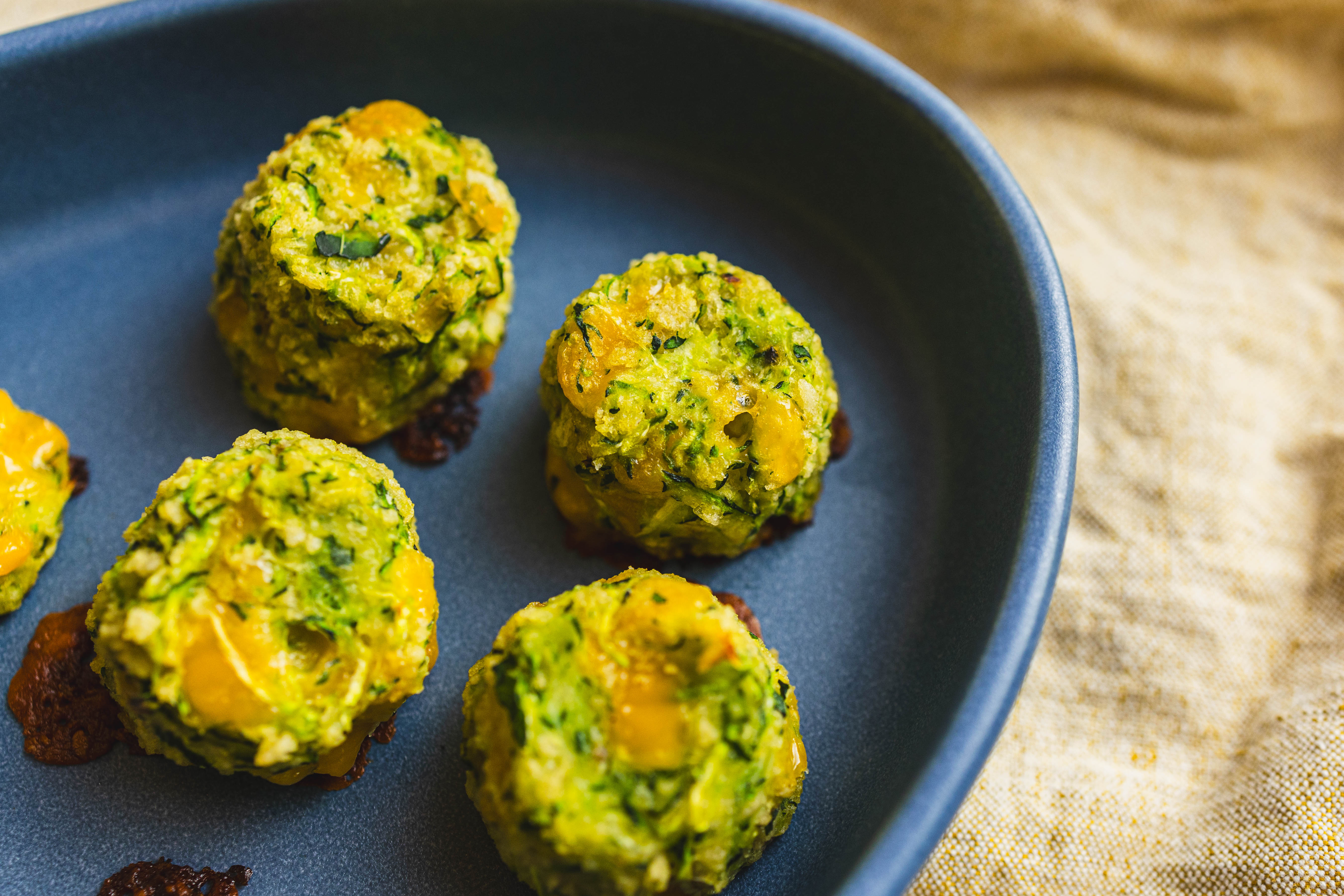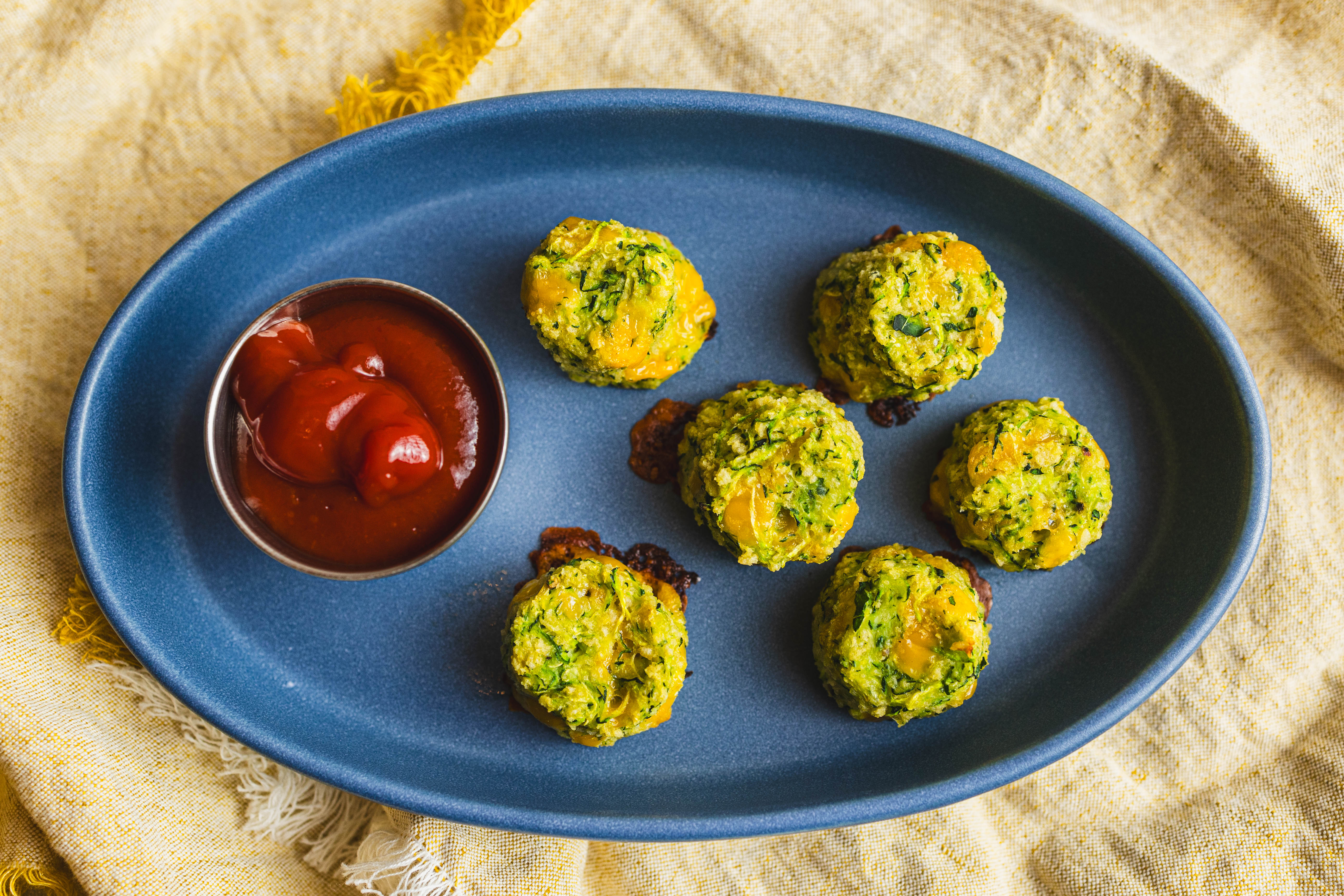 What's the "z" in Z's Tots? You might be surprised! When you bite into these little treats, you taste a blend of cheese, a hint of garlic, and something kind of earthy but a little bit sweet. Can you guess what the mysterious ingredient is? Zucchini, of course! That's the savory secret to what makes Z's Tots so tasty (and healthy)! You're going to be shocked by how much you'll love them!